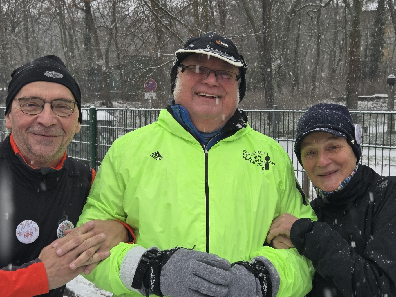 Silvesterlauf Neuenhagen 31.12.2025Am 31.12.2025 stand wieder der Neuenhagener Silvesterlauf auf dem Plan. Gegen 8 Uhr meinte es Petrus gut mit uns und schickte uns reichlich Schneeflocken für ein wenig Winteridylle.Die geplante Mannschaftsstärke wurde dadurch zwar reduziert (der Hometrainer und die Wärme waren wichtiger), aber Steffen, Silke und Thomas ließen sich nicht abschrecken und machten sich gegen 9:30 Uhr auf den Weg nach Neuenhagen. Steffen war (zur Abwechselung mal als Autofahrer) als Erster dort und erkundete noch etwas die Gegend. Thomas sammelte Gepäckträgerin Silke ein und es wurden vorsichtig die verschneiten Wege abgetastet - aber um gute Laufzeiten ging es ja heute nicht. Gegen 10:15 Uhr stürmten wieder die Kids über die Kurzstrecke und um 10:35 Uhr folgte das restliche Rudel an Läufern, Walkern und Wanderern. Dieses Jahr drehte Steffen nur eine und das Teufel-Team zwei 2,5 km Runden, um noch genügend Zeit für die Stärkung mit Glühwein und Pfannkuchen zu haben. Seltsamerweise gehörten wir wieder zu den letzten VP-Gästen, bevor es wieder Richtung Heimat ging. Auf dem Rückweg wurde an der Stamm(tisch)eiche, aus verschiedenen Gründen, noch ein Pflicht-Stopp eingelegt und zum Ausklang (und wegen der geschafften 2000 Laufkilometer in 2025) der Rucksack noch etwas erleichtert - leider ohne Autofahrer Steffen. Auf dem letzten Stück des Heimwegs freuten wir uns über die gut gefegten Gehwege und stolperten dabei über den verantwortlichen 'Hausmeister'. Nach einem netten 'Erfahrungsaustausch' mit ihm und Micha ging es wieder in die warmen Höhlen zurück und der Silvesterabend konnte beginnen... |